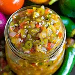 This relish is quick to prepare and uses simple pantry ingredients while delivering big flavor. The combination of colorful bell peppers and onions creates a crunchy texture, while the vinegar and spices bring a lively tang that improves as it rests. It’s naturally vegan, easy to customize, and ideal for making ahead so you always have a flavorful topping ready in the fridge.