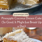 Pineapple Coconut Dream Cake is a chilled, tropical dessert made with moist pineapple cake soaked in cream of coconut and sweetened condensed milk, then topped with whipped topping and shredded coconut. It’s easy to prepare, crowd-pleasing, and perfect for warm-weather occasions or make-ahead treats.