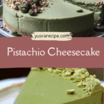 This no-bake Pistachio Cheesecake features a buttery graham cracker crust and a silky cream cheese filling infused with real pistachio paste. Topped with crushed roasted pistachios, it’s a decadent yet simple dessert perfect for any occasion.