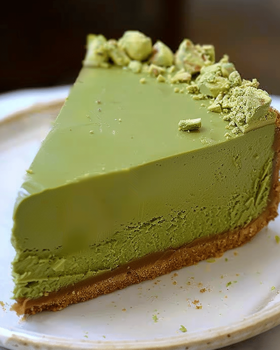 A silky, no-bake pistachio cheesecake that combines the irresistible flavors of creamy cheese, rich pistachio, and a buttery graham cracker crust. Each bite offers a luxurious texture and nutty sweetness that’s both elegant and comforting.