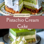 Store the Pistachio Cream Cake covered in the refrigerator for up to 3 days. Before serving, let it sit at room temperature for about 15 minutes for the best texture. This cake is best served cold; reheating is not recommended as it may affect the cream and ganache texture.