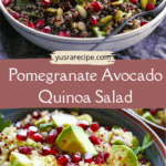 This vibrant Pomegranate Avocado Quinoa Salad combines fluffy quinoa, creamy avocado, sweet pomegranate arils, crunchy nuts, and fresh greens, all dressed in a zesty lemon-pomegranate vinaigrette for a refreshing, nutrient-packed meal.
