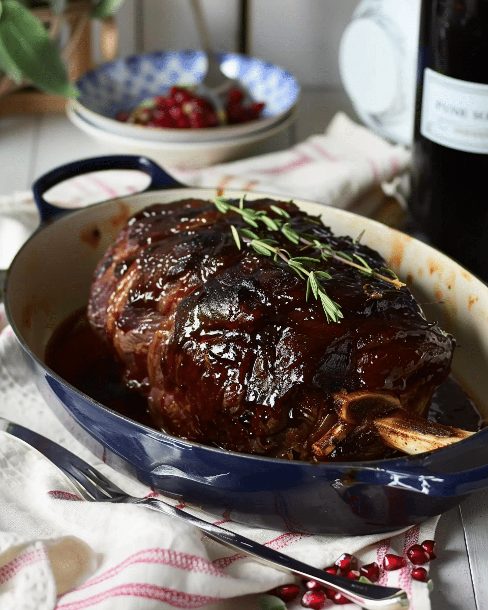 This pomegranate glazed leg of lamb is a festive, flavorful main dish featuring a savory marinade and a sweet-tart pomegranate molasses glaze. It’s perfect for holidays or special gatherings, offering tenderness, bold flavor, and a beautiful presentation.