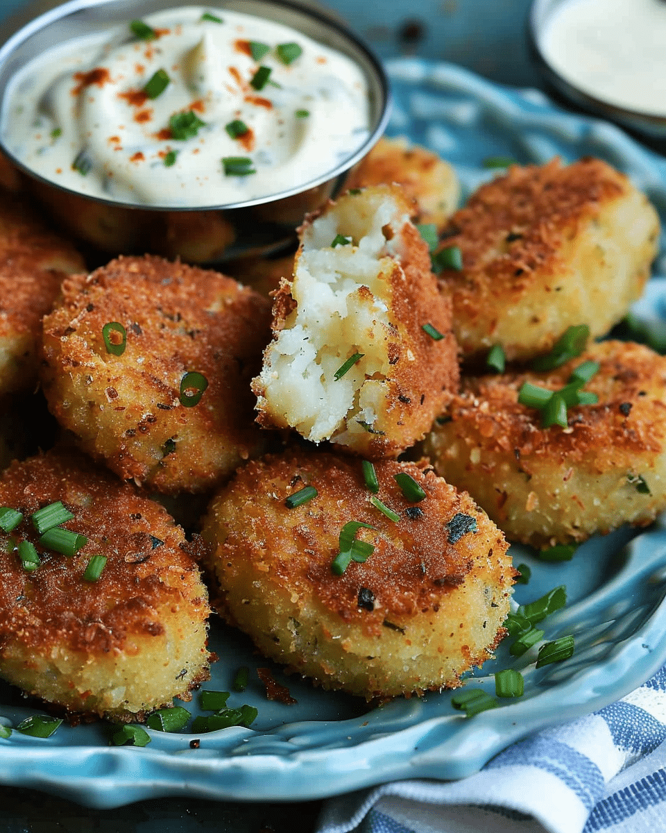 Veggie mix-ins: Stir in finely chopped sautéed onions, peppers, or spinach into the mashed potatoes before chilling.