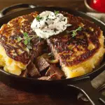 Golden, crispy potato pancakes topped with seasoned beef and sweet caramelized onions make this dish deeply comforting and satisfying. It’s a hearty, skillet-made meal that combines simple pantry ingredients into something rich in flavor and perfect for any time of day.