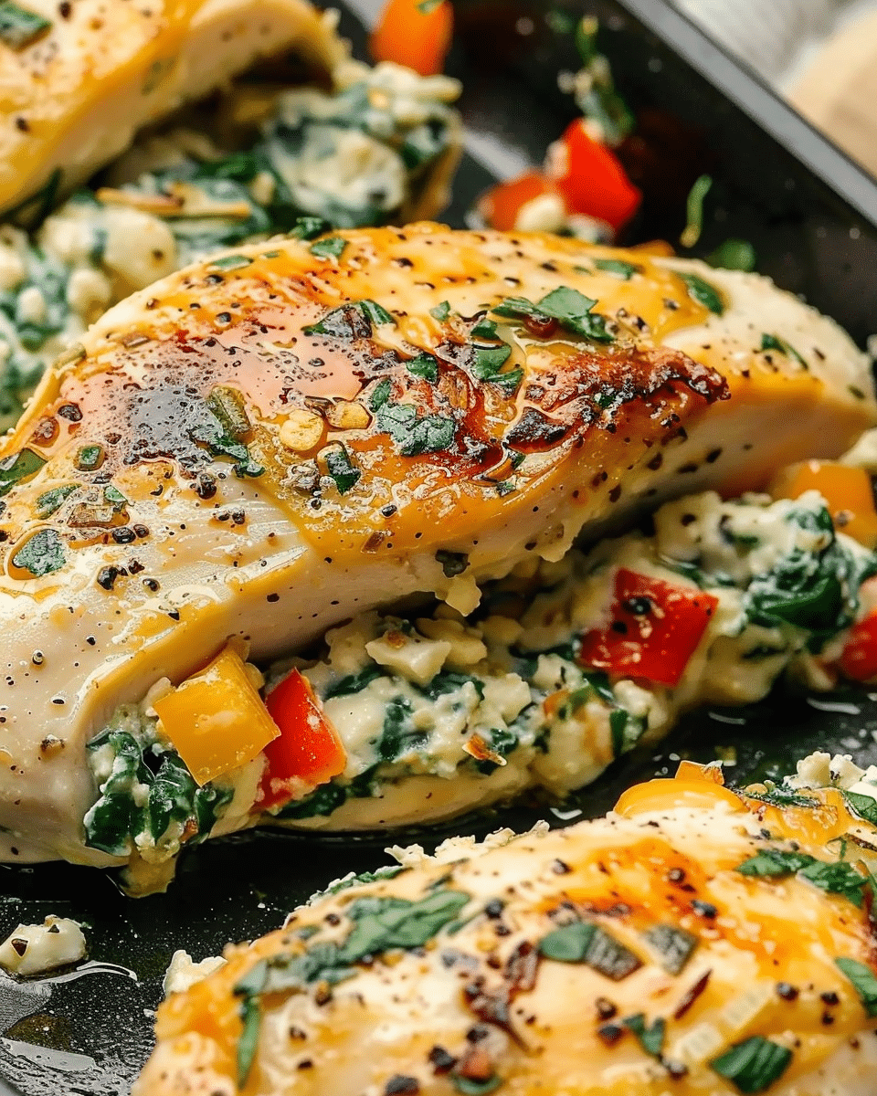 You can swap spinach for chopped kale or Swiss chard for a slightly heartier texture. Add crushed red pepper flakes to the filling for gentle heat. For extra herbs, mix in fresh basil or dill. If you prefer smaller portions, use thinner chicken breasts and adjust baking time slightly.