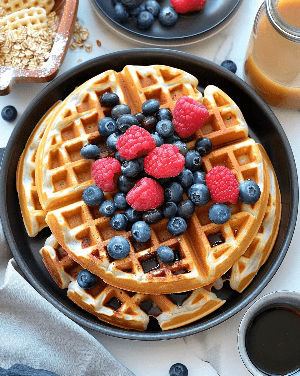 I turn a few simple ingredients into warm, fluffy waffles packed with protein. They’re crisp on the outside, soft inside, and perfect for busy mornings. I blend everything quickly, pour the batter into my waffle iron, and in minutes I have a satisfying breakfast that I can enjoy right away or freeze for later.