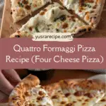 Quattro Formaggi Pizza is a classic Italian cheese pizza featuring four distinct cheeses layered over a soft homemade dough, creating a rich, creamy, and indulgent flavor with a perfectly crisp crust.