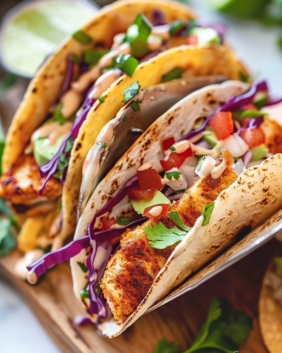 Store leftover cooked fish in an airtight container in the refrigerator for up to 2 days. Keep toppings and sauce stored separately for best freshness. Reheat the fish gently in a skillet over medium heat or in the oven at 350°F until warmed through. Assemble tacos fresh after reheating. The sauce is best enjoyed cold and does not require reheating.