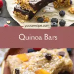 These quinoa bars are a nourishing, plant-based snack made with simple pantry ingredients. They are naturally free from gluten, eggs, and dairy, yet still rich in flavor and texture. Each bar delivers satisfying protein and energy, making them perfect for busy mornings, healthy snacking, or a light post-workout bite.