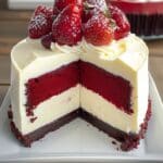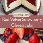 Red Velvet Strawberry Cheesecake is a show-stopping layered dessert featuring a moist red velvet cake base, creamy cheesecake filling, and a fresh strawberry topping. Rich, smooth, and beautifully vibrant, it’s perfect for celebrations and special occasions.