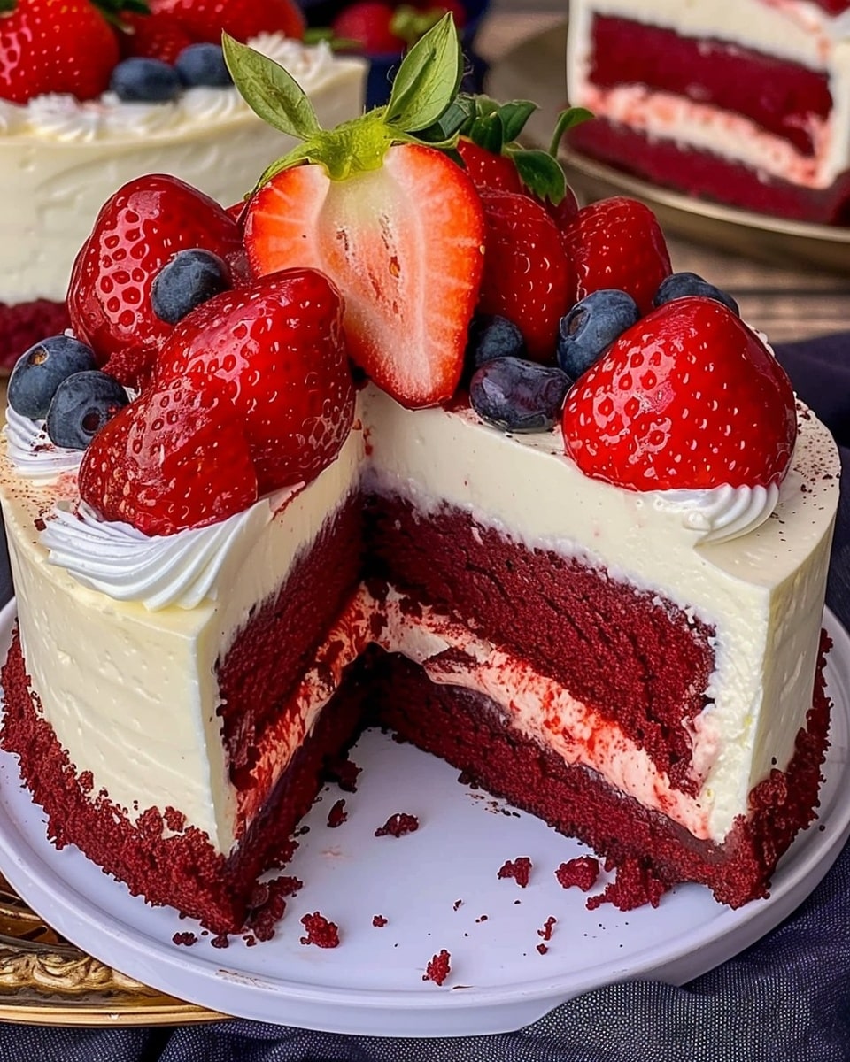 A stunning dessert that combines the rich cocoa flavor of red velvet cake with the creamy smoothness of cheesecake and the fresh sweetness of strawberries. This layered masterpiece is perfect for celebrations, holidays, or anytime you want to impress with a bakery-style treat made at home.
