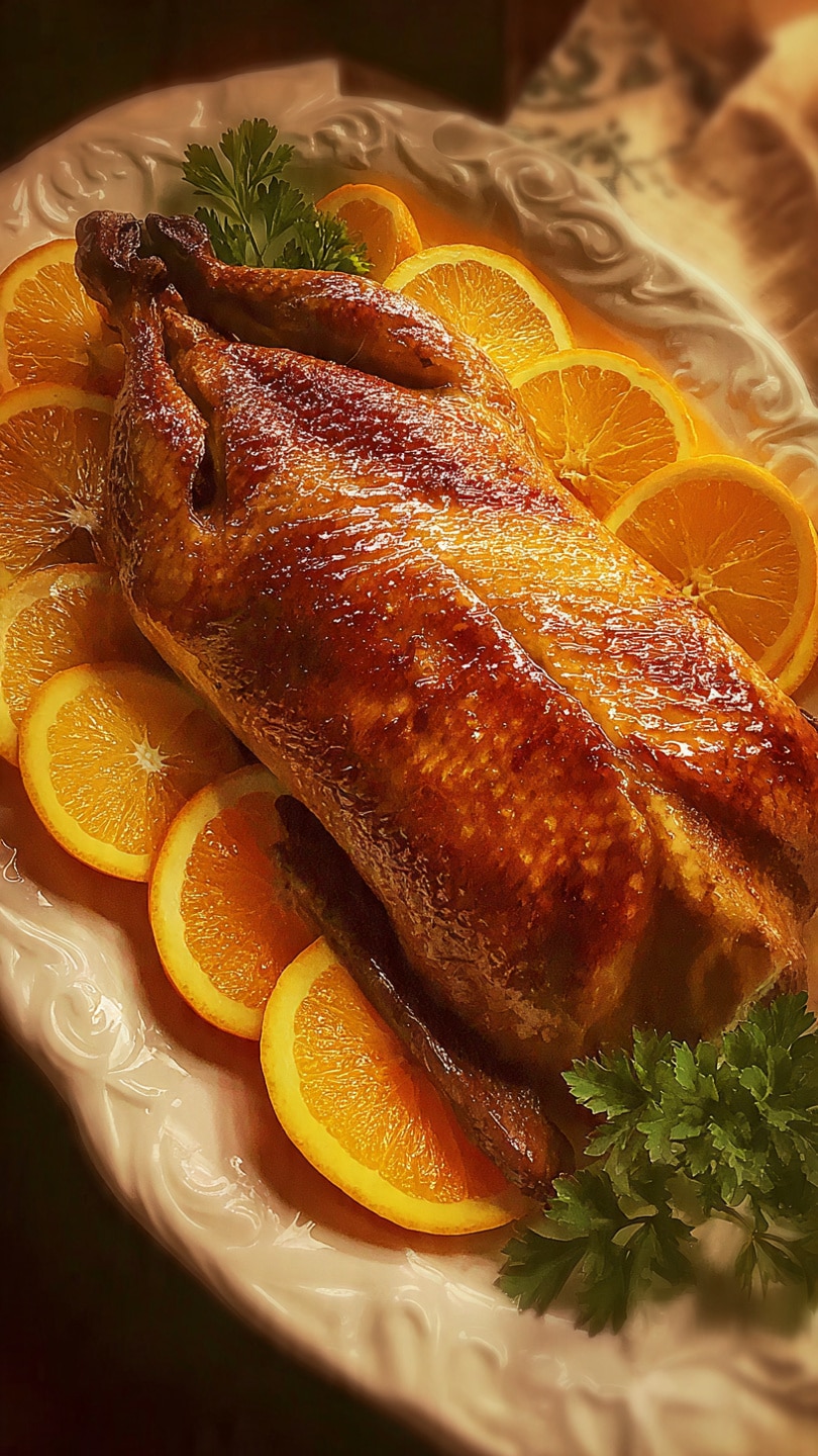 A richly flavored roast duck recipe with orange, soy, and ginger that delivers crispy skin, tender meat, and a light, fragrant sauce—perfect for festive occasions or impressive dinners.