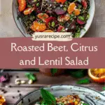 A vibrant salad combining earthy roasted beets, tender lentils, and bright citrus segments, tossed in a tangy dressing with fresh herbs for a refreshing and nourishing dish.