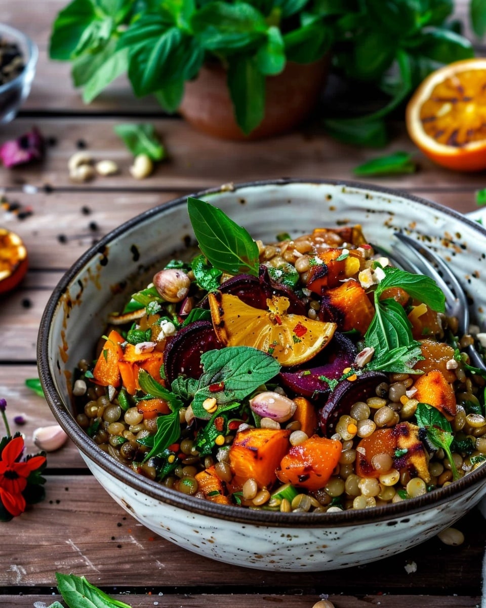 This roasted beet citrus and lentil salad is a vibrant, nourishing dish that combines earthy roasted beets, tender lentils, and bright citrus flavors. It’s perfectly balanced with a tangy dressing and fresh herbs, making it ideal as a light main course or a colorful side dish.