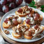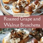 Roasted Grape Crostini with Goat Cheese and Walnuts is a sophisticated appetizer that combines caramelized grapes, tangy goat cheese, crunchy walnuts, and a drizzle of honey on crisp toasted baguette slices. It’s an elegant yet simple dish perfect for entertaining or casual gatherings.