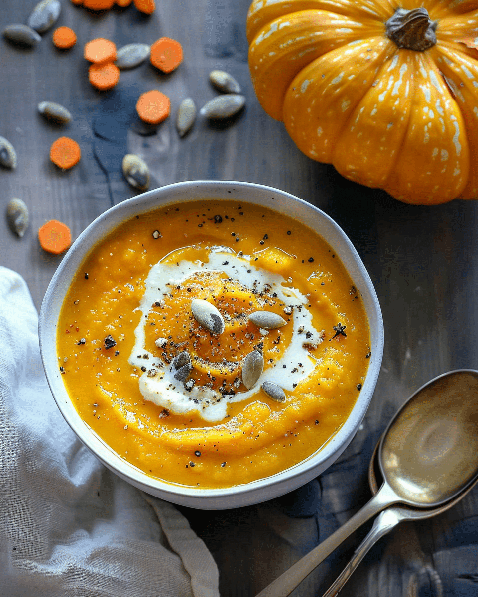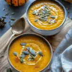 A creamy, comforting soup made with roasted pumpkin and carrots, blended with warming spices and finished with coconut milk. Perfect for fall and winter, this vegan-friendly soup is nourishing, flavorful, and easy to make.