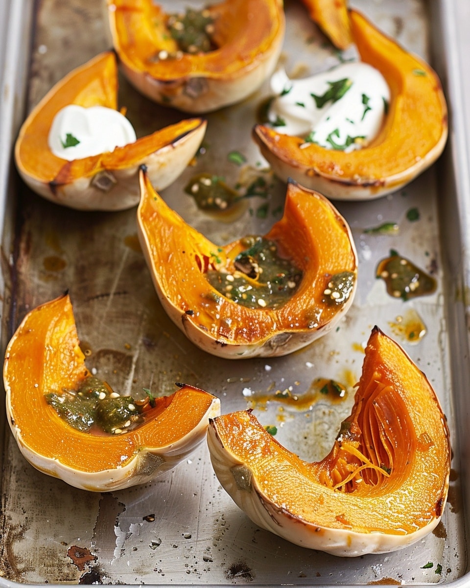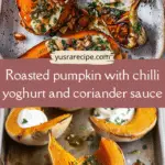 Sweet roasted pumpkin paired with tangy chilli yoghurt and a fresh coriander sauce for a vibrant and balanced dish. This flavorful recipe is simple yet elegant, perfect as a side or light meal.