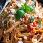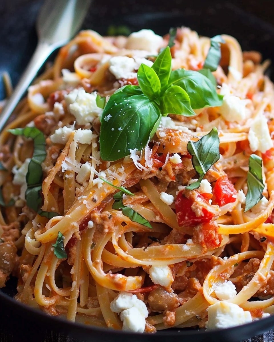 A rich and creamy fettuccini pasta tossed in a silky roasted red pepper and feta sauce, balanced with fresh basil and Parmesan. This Mediterranean-inspired dish delivers bold flavor and elegant comfort in under 30 minutes.