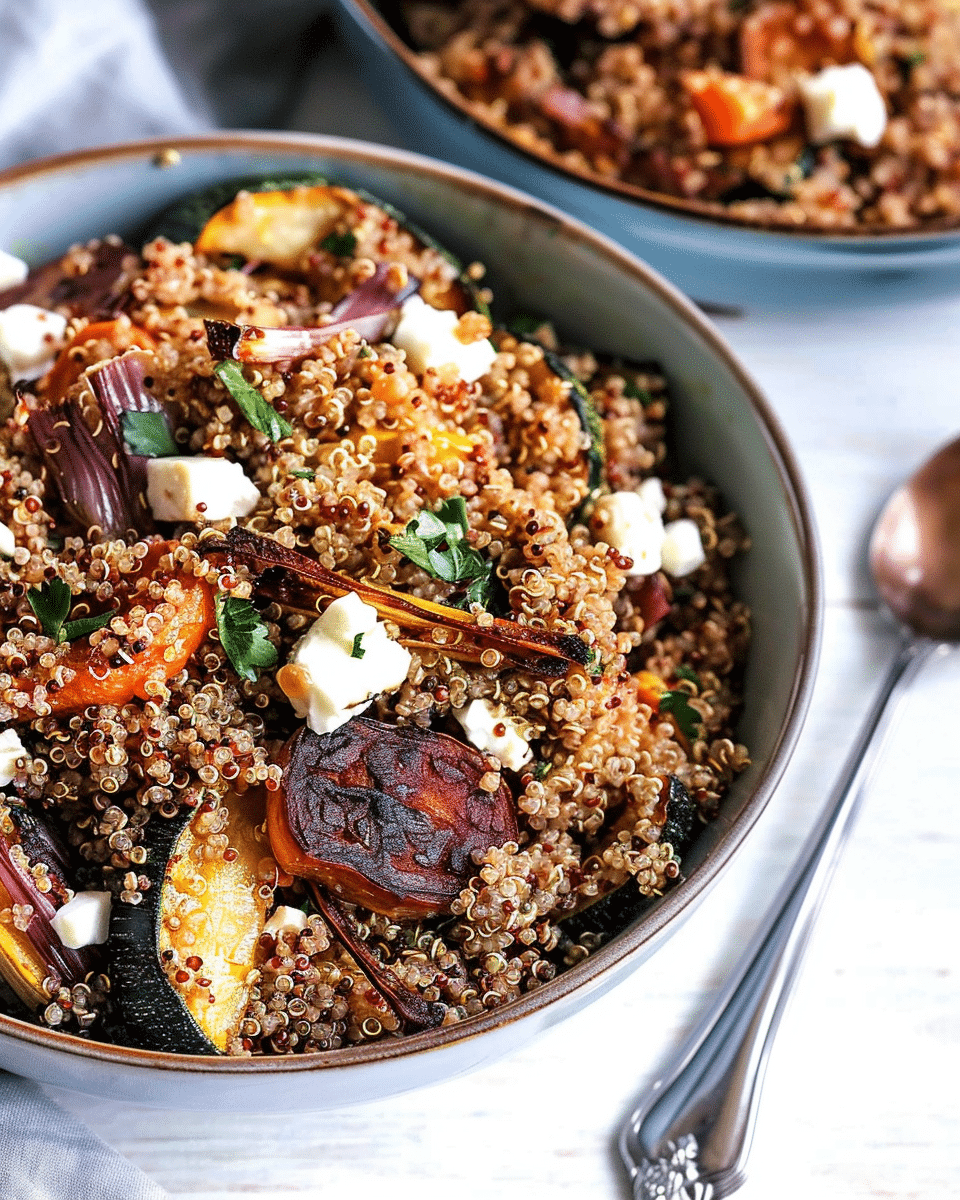 This roasted vegetable, quinoa and feta salad pulls together in a stunning way: colourful, flavour-packed, texturally interesting, and satisfying whether eaten solo or alongside other dishes. With its make-ahead flexibility and gluten-free tag, it’s a brilliant choice for both weeknight meals and entertaining. Try it once — it might just become one of your favourite go-to salads.