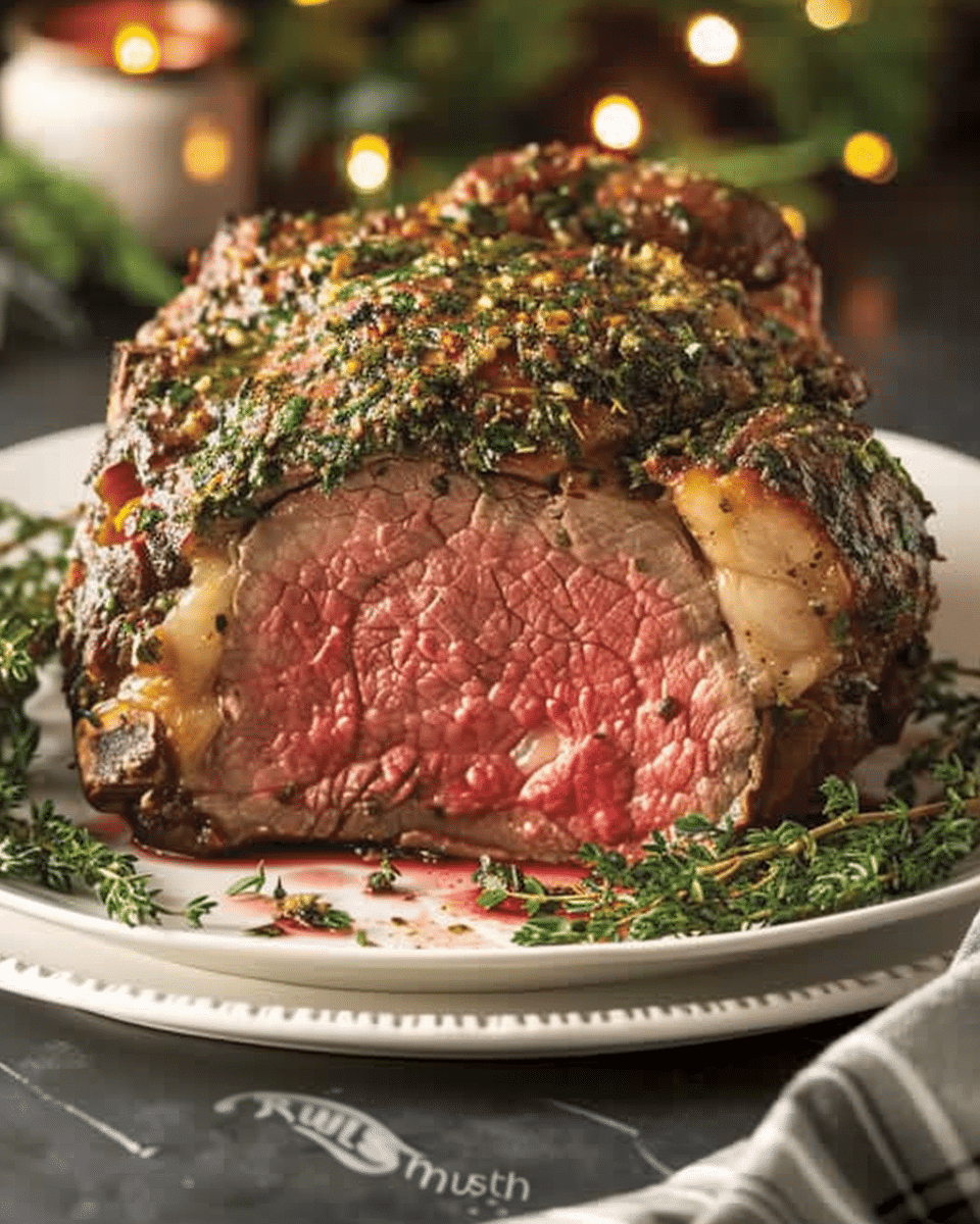 A tender and juicy prime rib roast with a garlic-herb crust, inspired by steakhouse flavors. Perfectly roasted with minimal effort, it’s a stunning centerpiece for holidays or special gatherings.