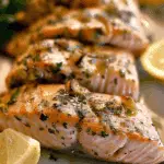 A fresh, vibrant, and naturally gluten-free salmon dish featuring flaky baked salmon paired with a creamy, herb-packed lemon yogurt sauce. This simple dinner captures bright summer flavors and comes together with minimal effort, making it perfect for weeknights or relaxed weekend meals.