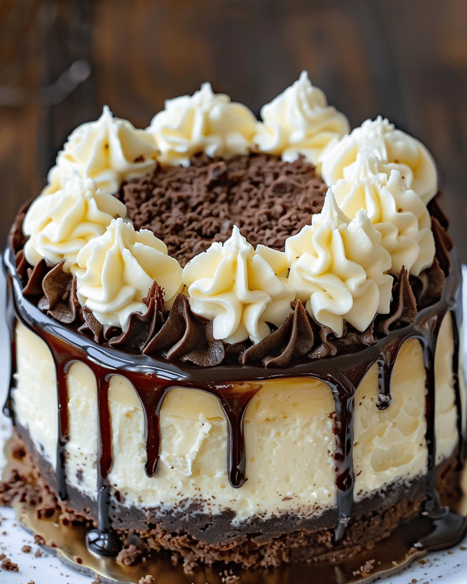 Extra Chocolate Layer: Add a layer of chocolate ganache between the cheesecake and topping for added richness.