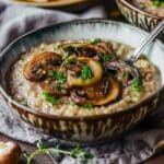 A hearty savory oatmeal bowl made with chewy steel-cut oats, sautéed mushrooms, aromatic ginger, and a creamy soft-boiled egg. This nourishing breakfast delivers deep umami flavor and satisfying texture in every bite.