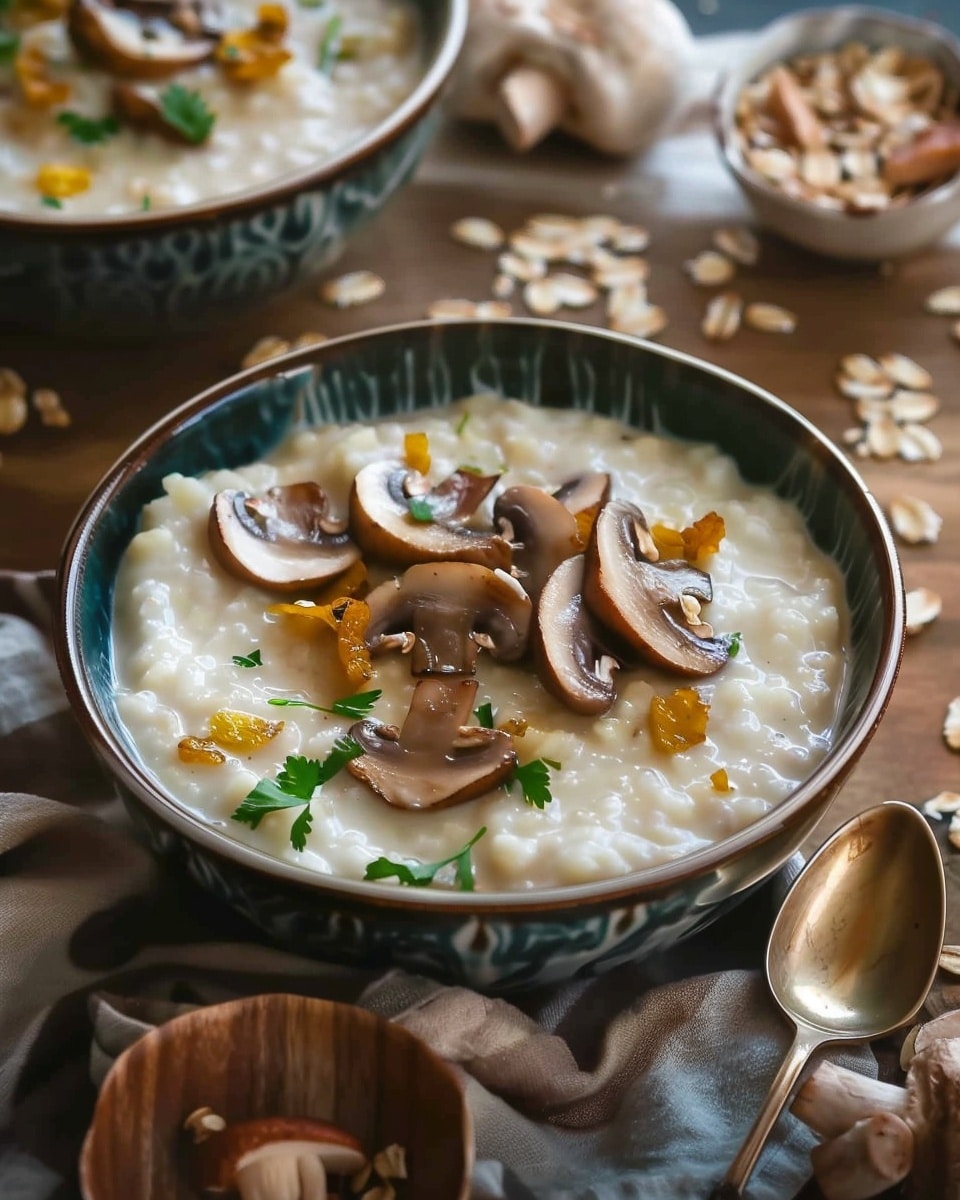 First, it’s incredibly nourishing. Steel-cut oats provide fiber and slow-releasing energy, helping you stay full for hours. Mushrooms add depth and umami flavor, while ginger brings warmth and brightness.