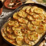 These scalloped potatoes are rich, savory, and layered with comfort. I love the way the creamy garlic-thyme sauce melds with the tender potatoes and sharp cheddar cheese. Whether I’m preparing them for a holiday table or a family dinner, they never fail to impress. With make-ahead flexibility and customizable variations, this recipe has earned a permanent spot in my rotation. Every bite reminds me why I come back to it again and again.