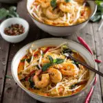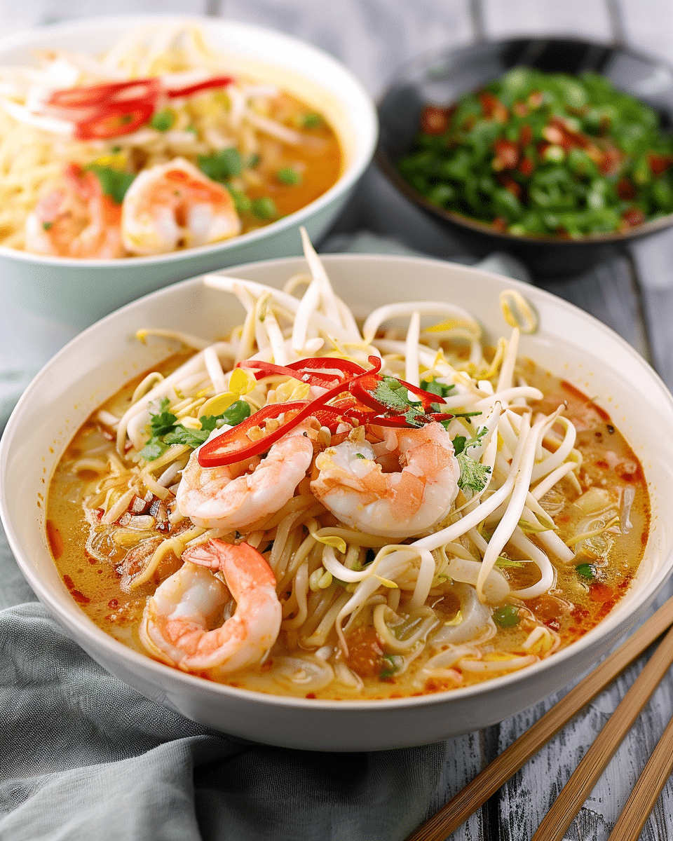 Seafood Laksa is a creamy, spicy Southeast Asian noodle soup made with a rich homemade laksa paste, coconut milk, white fish, prawns, and rice noodles. Aromatic, bold, and deeply satisfying — it brings restaurant-level flavor to your kitchen in about 30 minutes.