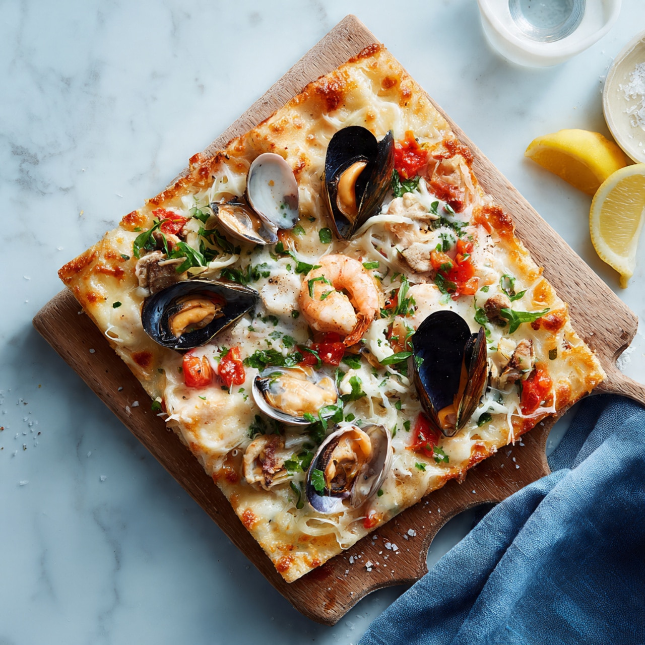 This seafood pizza brings together a crisp, airy crust, a fragrant tomato base, and a generous mix of tender shrimp, squid, mussels, and clams. Inspired by classic Mediterranean flavors, it delivers a refined yet comforting pizza experience that feels special enough for a weekend dinner but simple enough to make at home.