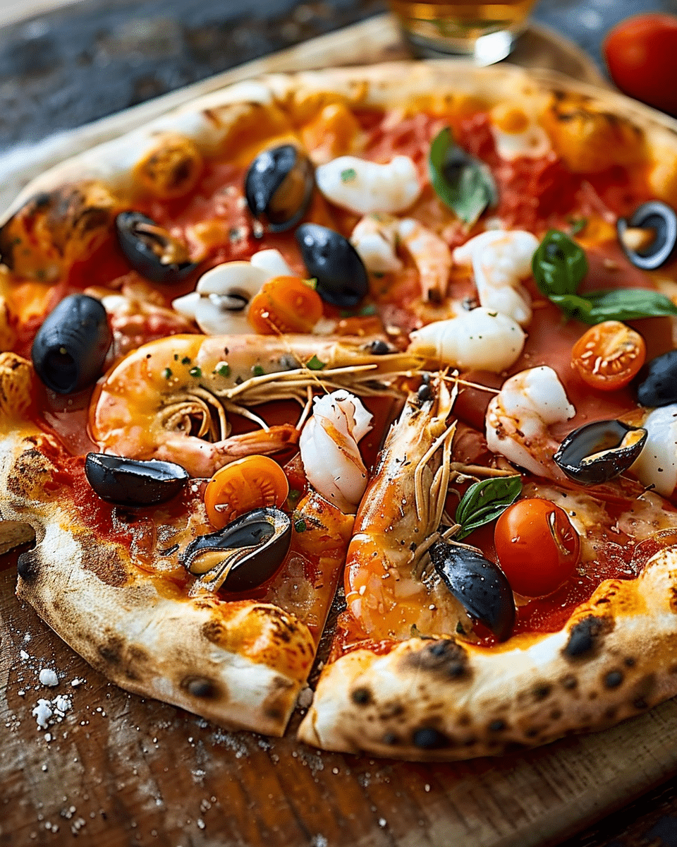 This Seafood Pizza (Pizza ai Frutti di Mare) is a celebration of coastal flavors, bringing together a crispy base, a flavorful tomato sauce, and a generous mix of seafood. It’s elegant yet unfussy—a recipe that transforms simple ingredients into something extraordinary. Whether served at a dinner gathering or a casual weekend meal, this pizza is sure to impress with every savory, sea-splashed bite.