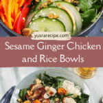 These Sesame Ginger Chicken and Rice Bowls are a fast, vibrant, and customizable meal featuring tender shredded chicken in a savory sesame-ginger sauce, served over jasmine rice with fresh, crunchy toppings.