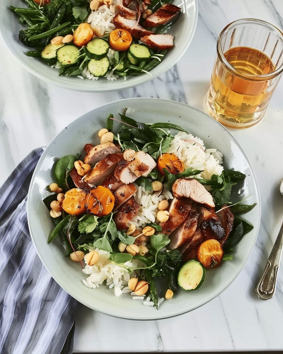 This recipe is perfect for quick weeknight meals, meal prep, or customizable family dinners. Using pre-cooked rotisserie chicken saves time while still delivering great flavor. The bright, savory sesame-ginger sauce ties everything together, and the toppings allow everyone to build a bowl exactly the way they like it. It’s nourishing, simple, and packed with texture.