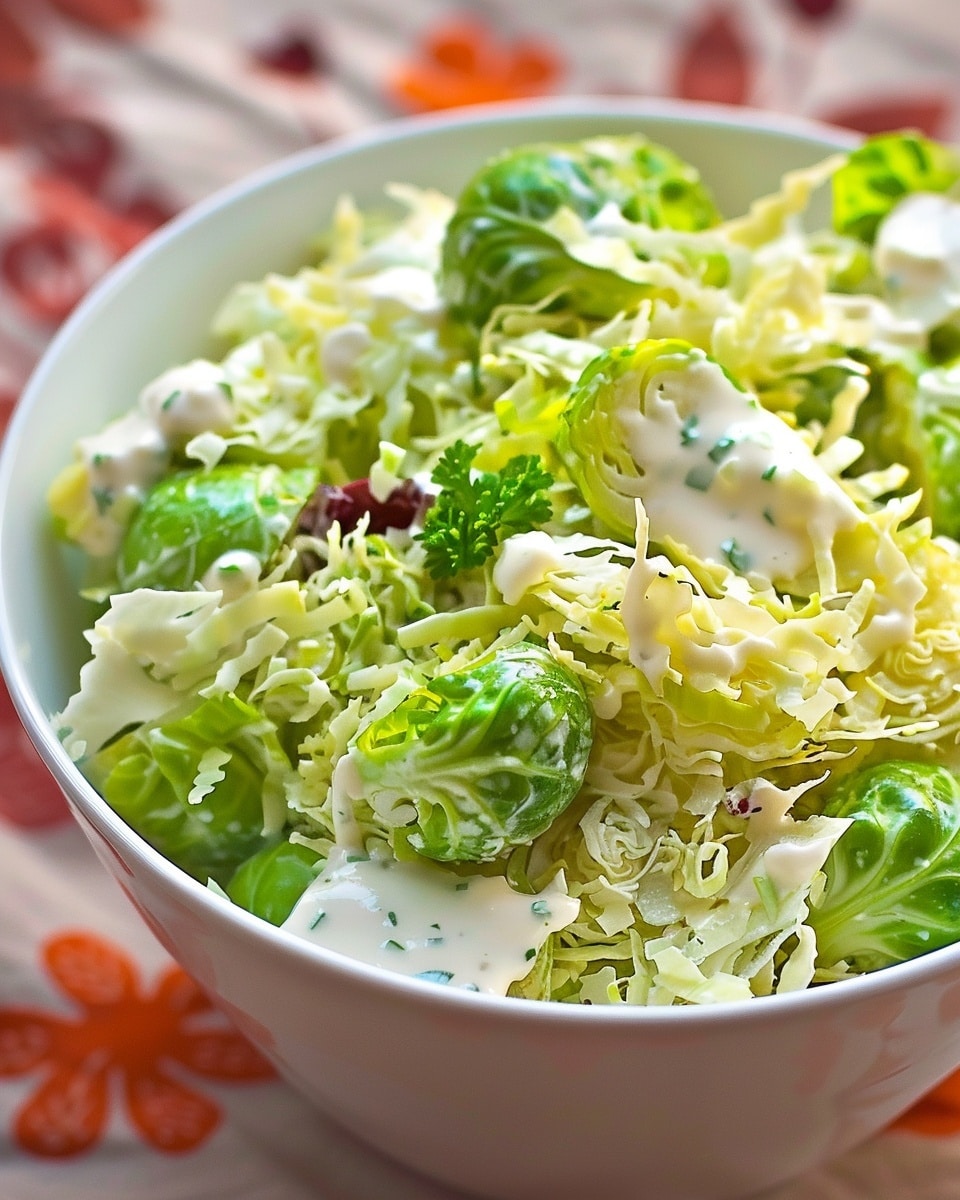 Shaved Brussels Sprout Salad with Creamy Mustard Dressing is a refreshing and flavorful dish that transforms a simple vegetable into something special. With crunchy nuts, sweet fruit, and a smooth homemade dressing, every bite offers a perfect balance of taste and texture. Whether served as a light meal or a vibrant side dish, this salad is a delicious way to enjoy fresh, wholesome ingredients.
