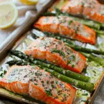 A fast, flavorful one-pan dinner of baked salmon and asparagus topped with a lemon garlic herb butter. Ready in 20 minutes, this healthy, elegant meal is perfect for busy weeknights or easy entertaining.