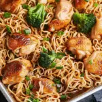This Sheet Pan Teriyaki Chicken and Ramen Noodles recipe delivers maximum flavor with minimal fuss. Crispy noodles, succulent chicken, and roasted vegetables come together in a satisfying, all-in-one dinner that’s easy to prepare and clean up. It’s an ideal go-to meal for busy weeknights or when you want something simple yet delicious.