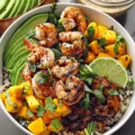 These shrimp and avocado bowls are loaded with juicy shrimp, creamy avocado, sweet mango salsa, and fluffy rice or quinoa, all topped with a zesty lime-chili sauce. A fresh, colorful, and satisfying meal ready in under 30 minutes.