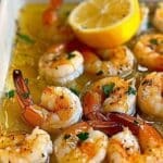 Pour the lemon butter mixture evenly over the shrimp.