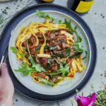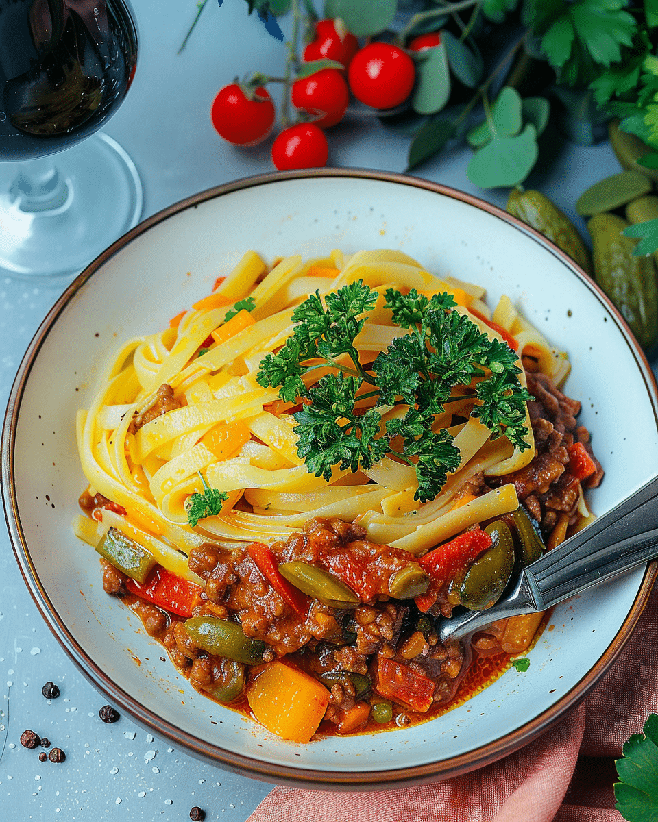 This slow cooked beef ragu pasta features melt-in-your-mouth beef simmered in a rich tomato and red wine sauce, served over wide ribbons of pasta. A deeply comforting, make-ahead-friendly dish perfect for gatherings or cozy dinners.