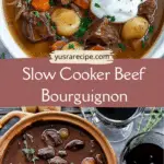 A rich and comforting Slow Cooker Beef Bourguignon made with tender beef chuck, hearty vegetables, and a deeply flavorful red wine and tomato-based sauce. Slow-simmered to perfection, this cozy stew is ideal for chilly evenings and family dinners.