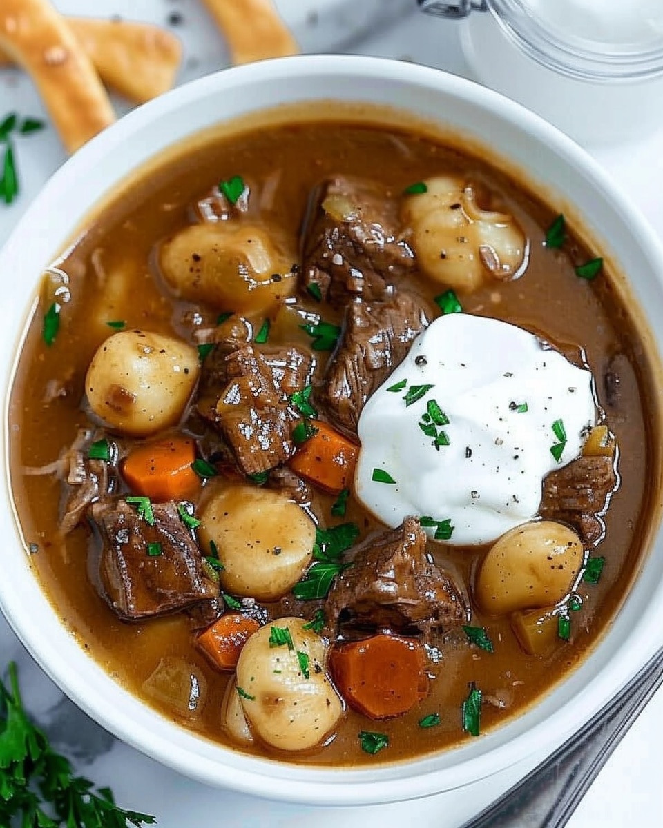 Slow Cooker Beef Bourguignon is the kind of meal that brings warmth and comfort to your table with very little effort. With tender beef, hearty vegetables, and a rich, savory sauce, it’s perfect for cold evenings or family gatherings. Prepare it in the morning, let it simmer slowly throughout the day, and enjoy a deeply satisfying dinner that tastes like it’s been tended to for hours.