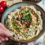 This smoky eggplant dip, known as baba ghanoush, is a creamy Middle Eastern classic made with fire-charred eggplants, tahini, garlic, lemon juice, and salt. Silky, smoky, and tangy, it’s perfect with pita, flatbreads, or as a spread in sandwiches and wraps.