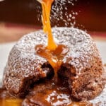 Spiced caramel can be stored in an airtight container in the refrigerator for up to one week. Leftover baked lava cakes can be wrapped tightly in plastic wrap and frozen. To reheat from frozen, unwrap and microwave for 30–45 seconds until warmed through. For best texture, enjoy reheated lava cakes immediately.