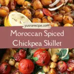 A hearty and flavorful spiced chickpea skillet simmered in a rich tomato sauce with aromatic spices, perfect for a quick and satisfying plant-based meal.