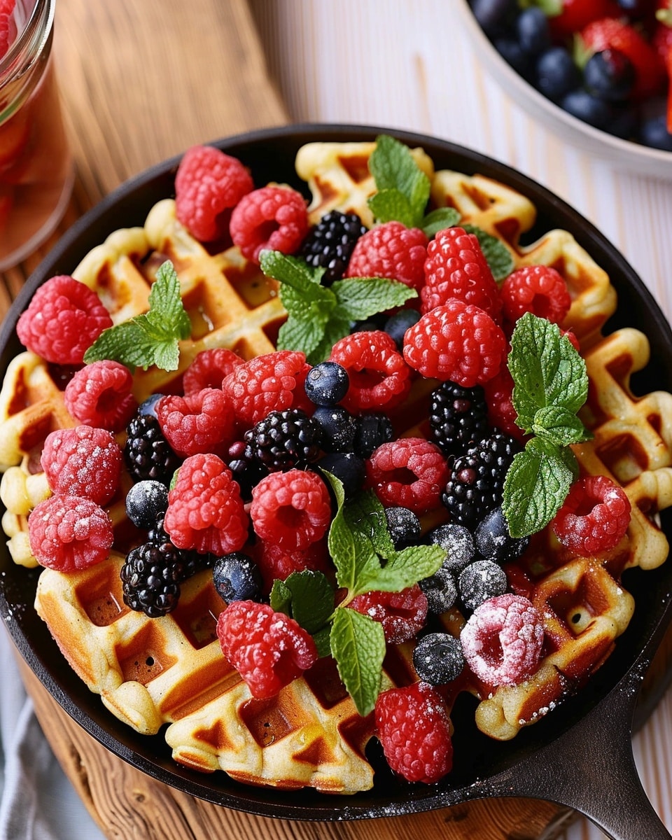 Scoop batter into the waffle iron, spreading it to fill the grid. Close the lid and cook for 5–7 minutes until the waffles are golden and crisp.