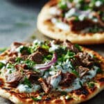 These spiced lamb flatbreads are a quick and satisfying meal inspired by Mediterranean flavors. Warm garlic and herb flatbreads are topped with fragrant lamb, melted mozzarella, fresh tomato and mint, then finished with a tangy lemon yoghurt drizzle. Perfect for busy weeknights, they deliver big flavor with minimal effort.