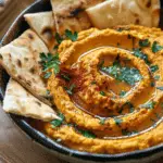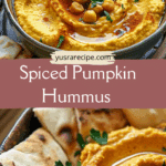 Spiced Pumpkin Hummus is a creamy, fall-inspired dip made with chickpeas, pumpkin puree, tahini, olive oil, and warm spices like cumin, coriander, and nutmeg. Smooth, flavorful, and versatile, it’s perfect for parties, snacks, or holiday gatherings when served with crunchy pita chips.