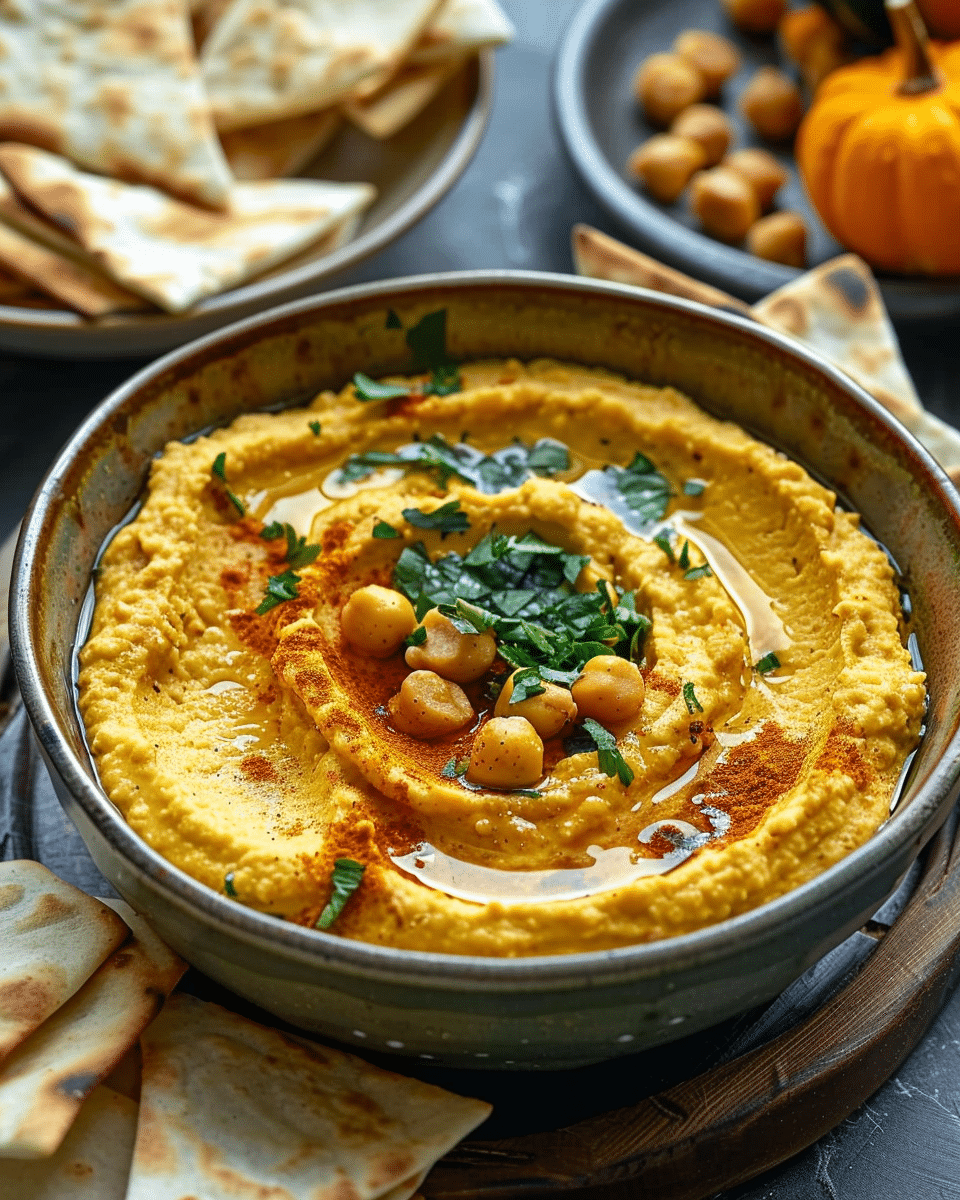 Spiced Pumpkin Hummus is a creamy, savory dip that brings together the heartiness of chickpeas and the earthy sweetness of pumpkin. Infused with warm spices like cumin, coriander, and nutmeg, this recipe is perfect for autumn gatherings, holiday parties, or everyday snacking. It offers a seasonal twist on classic hummus while remaining quick to prepare and loaded with wholesome ingredients. Paired with crunchy pita chips, it’s an appetizer that delivers flavor, texture, and comfort in every bite.